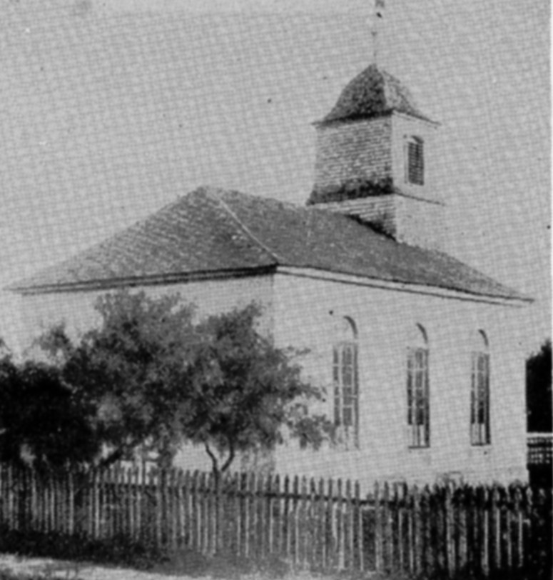 Zion Lutheran Church was organized on January 29,1852. The first pastor was Reverand Christian Oefinger of Germany. Services were initially held in log cabins of the Castroville settlers until a stone church was built in 1853. Construction of the first stone church in the state of Texas began with a $400 loan from the General Synod. This first church building had 18-inch thick stone walls, built with heavy cypress and mesquite timbers, put together with wooden pegs, had an earthen floor and a canvas ceiling. Members of the congregation furnished the building's rock, sand, and timbers, making Zion one of the first Lutheran Church buildings to be constructed out of stone.